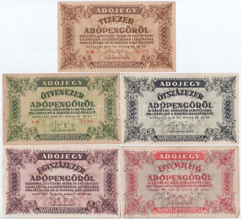 1946. 10.000AP + 50.000AP + 100.000AP + 500.000AP + 1.000.000AP T:II-I... https://www.darabanth.com/hu/405-Gyorsarveres/405.0/Numizmatika/Magyar-bankjegyek~1500007/1946-10000AP-plus-50000AP-plus-100000AP-plus-500000AP-plus-1000000AP-TII-III~II2498501