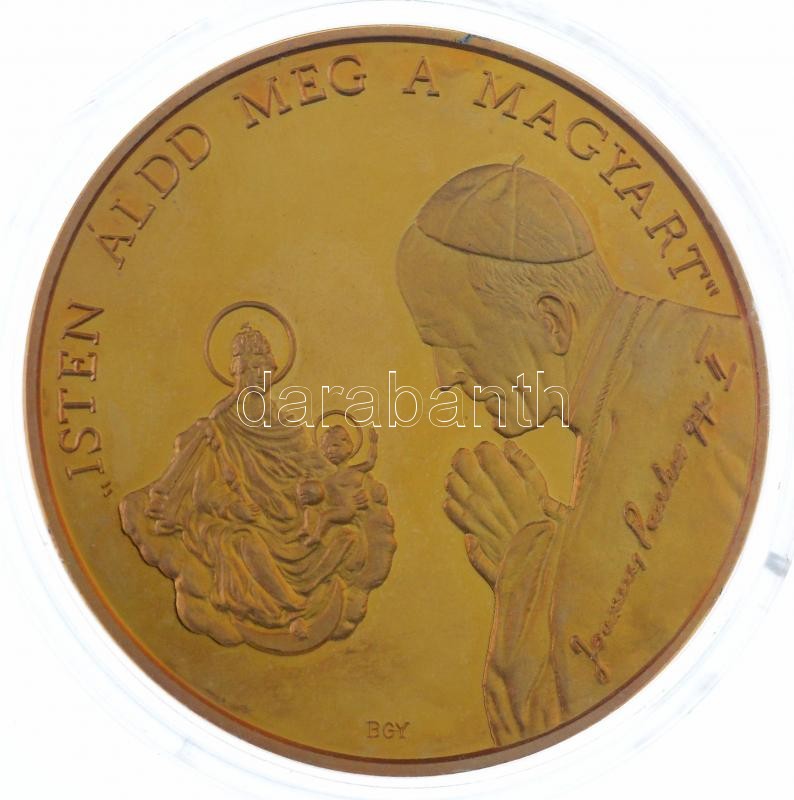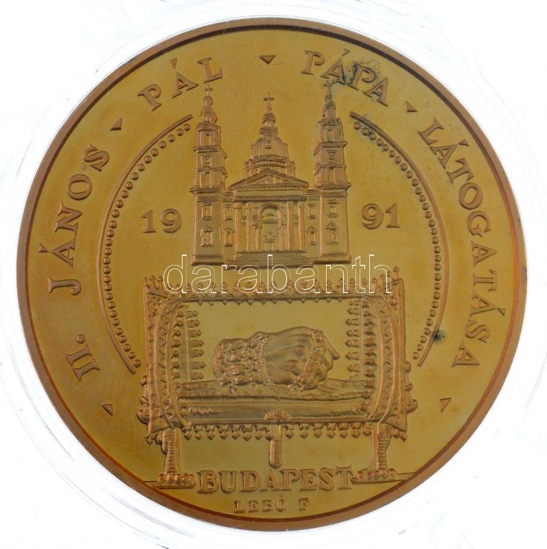 Bognár György (1944-) / Lebó Ferenc (1960-) 1991. "II. János Pál pápa látogatása - Budapest" aranyozott fém emlékérem, tokban (65mm) T:PP fo., ujjlenyomat