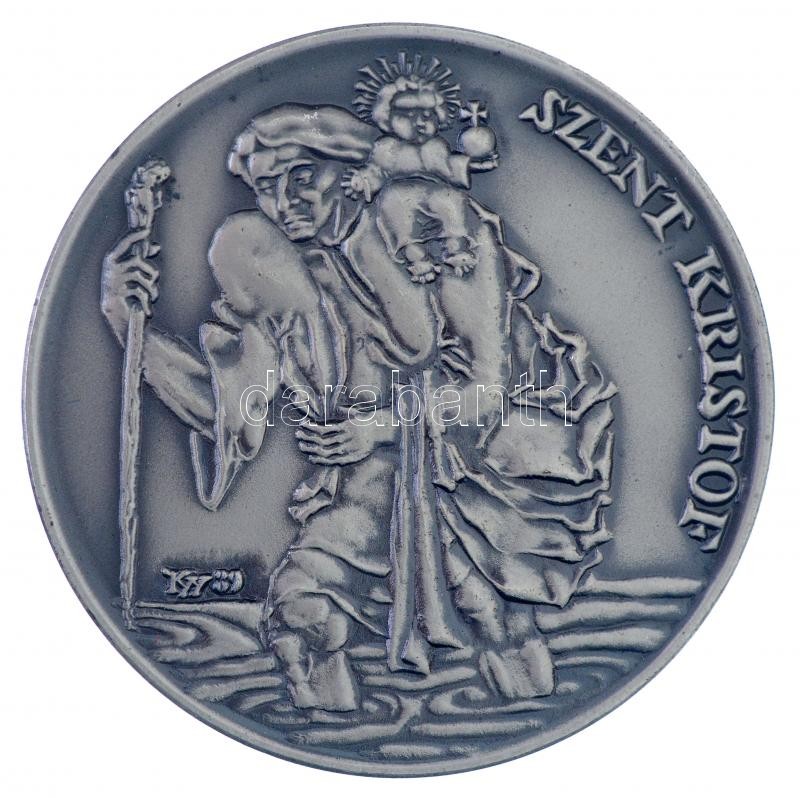 Leírás: Kiss György (1943-) 1989. "Szent Kristóf / Magyar Autóklub" ezüstözött fém emlékérem (42,5mm) T:1