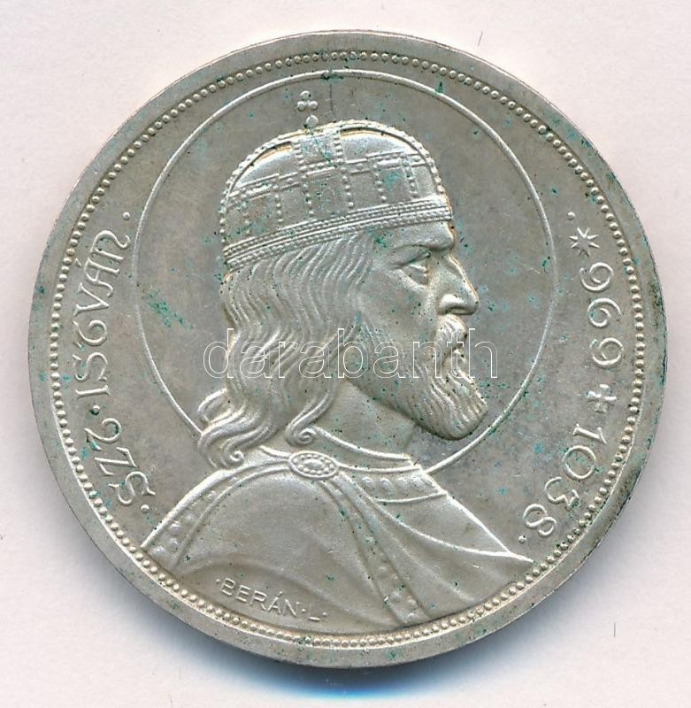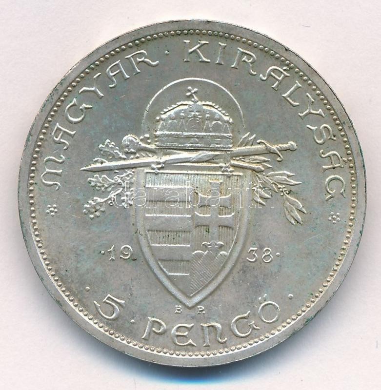 Leírás: 1938. 5P Ag "Szent István" T:1- patina Adamo P8.1