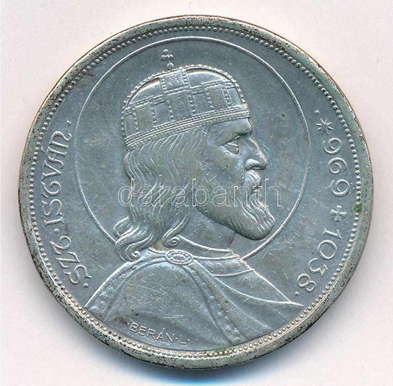 Leírás: 1938. 5P Ag "Szent István" T:2- patina Adamo P8.1