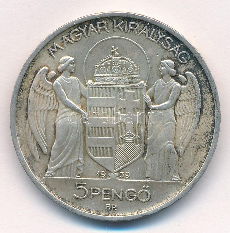 Leírás: 1939. 5P "Horthy balra" Ag T:1-,2 patina Adamo P8.2