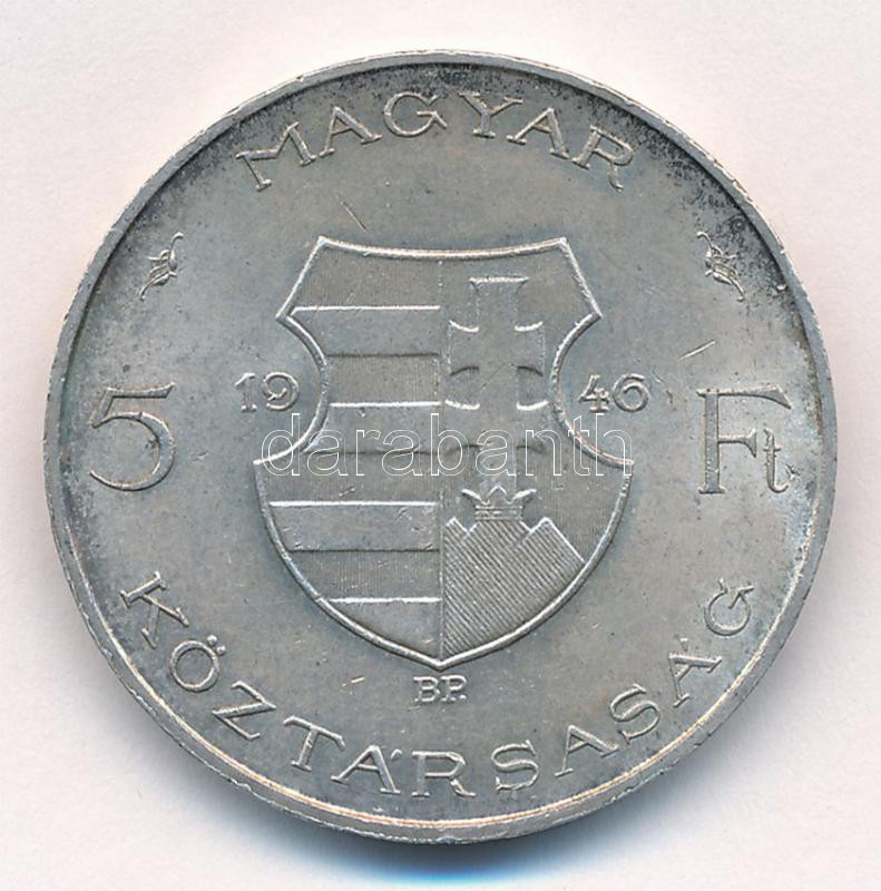 1946. 5Ft Ag "vastag Kossuth" fordított peremirattal T:2 Ada... https://www.darabanth.com/hu/405-Gyorsarveres/405.0/Numizmatika/Magyar-es-magyar-verdejelu-fem-es-ezustpenzek~1500008/1946-5Ft-Ag-vastag-Kossuth-forditott-peremirattal-T2-Adamo-F8~II2499119