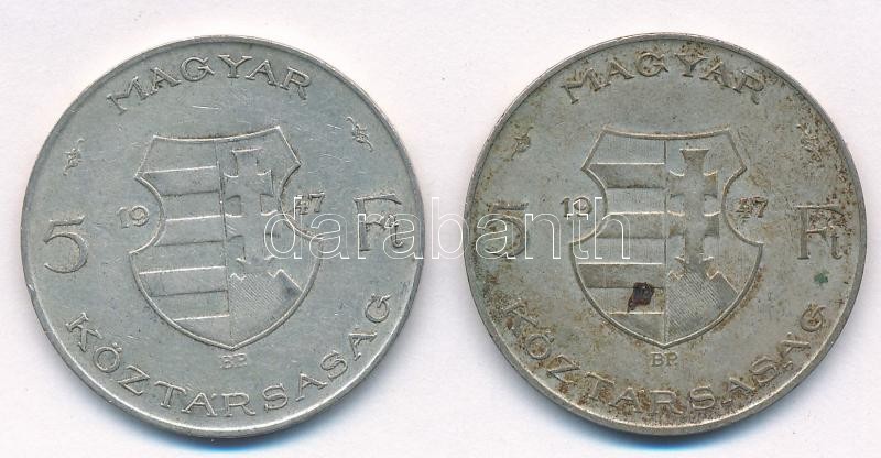 Leírás: 1947. 5Ft Ag "Kossuth" (2x) T:2-,3 patina