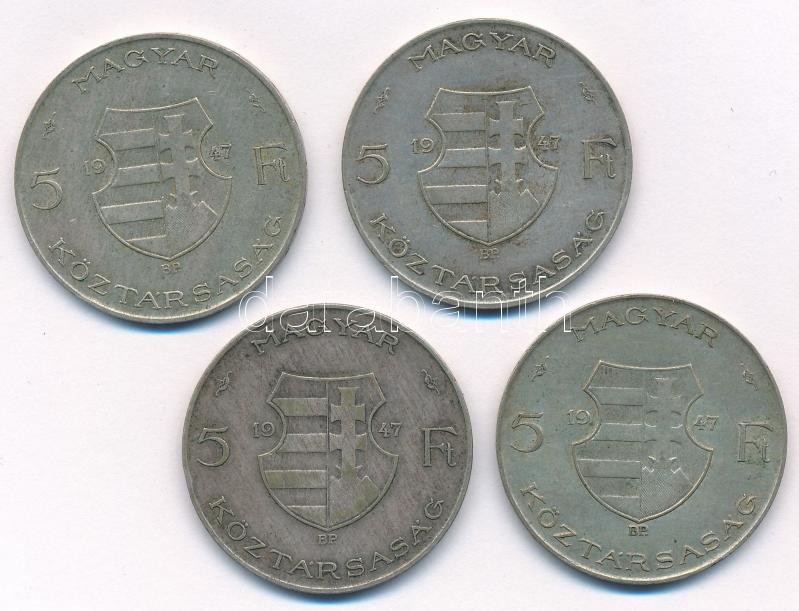 Leírás: 1947. 5Ft Ag "Kossuth" (4x) T:2-,3