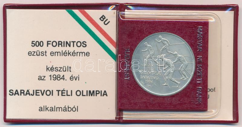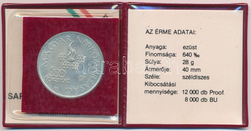 Leírás: 1984. 500Ft Ag "Sarajevoi Téli Olimpia" eredeti tokban, tanúsítvánnyal T:BU Adamo EM76