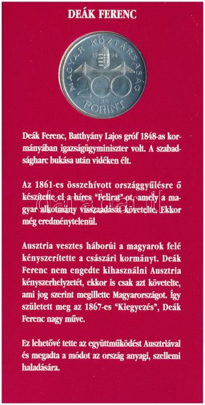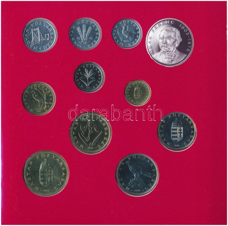 1994. 10f-200Ft (11xklf) forgalmi sor dísztokban, közte 1994. 200Ft Ag "Deák", "Magyarország pénzérméi" sorozat. A tokon a ragasztás részben elengedett. T:BU
