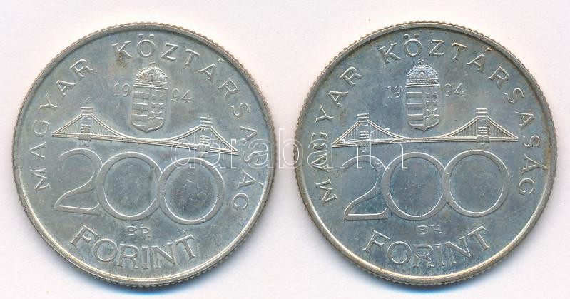 Leírás: 1994. 200Ft Ag "Deák" (2x) T:2 patina Adamo F13.1
