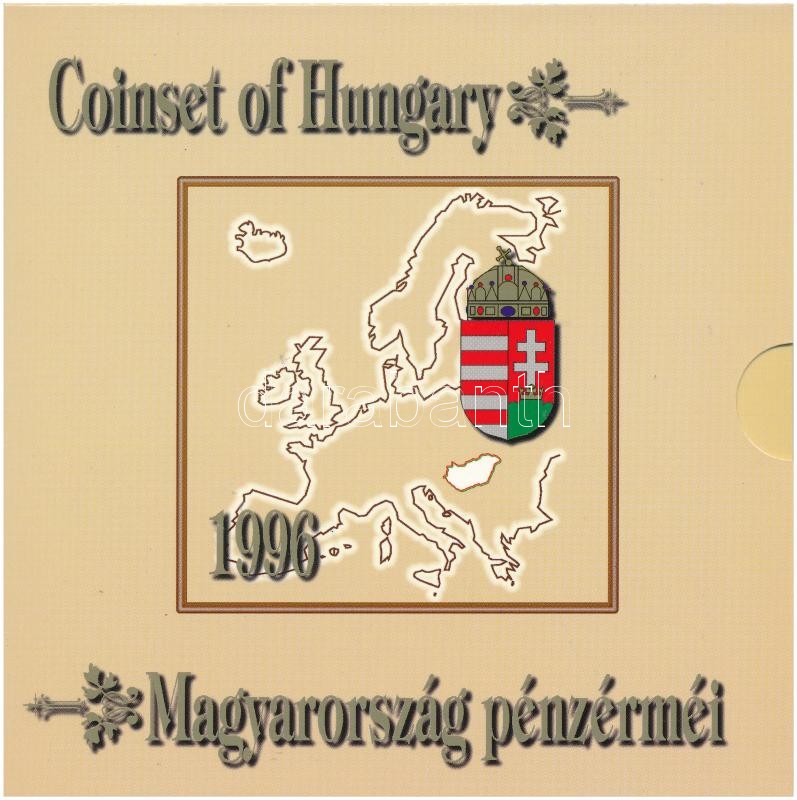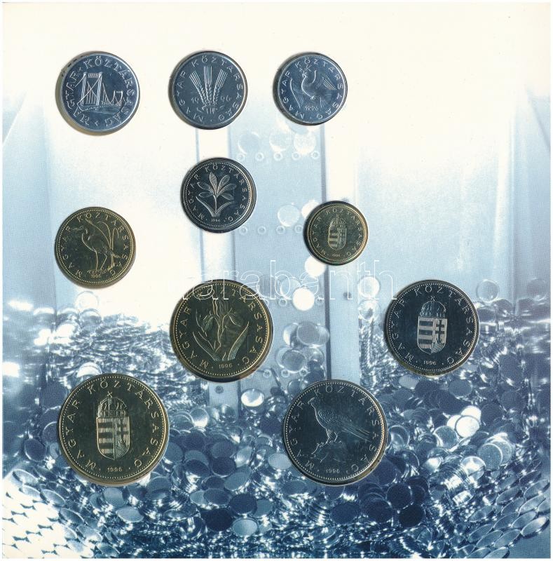 Leírás: 1996. 10f-100Ft (10xklf) "50 éves a forint" forgalmi sor dísztokban. A tokon a ragasztás részben elengedett T:BU