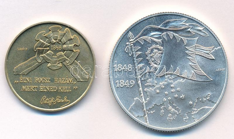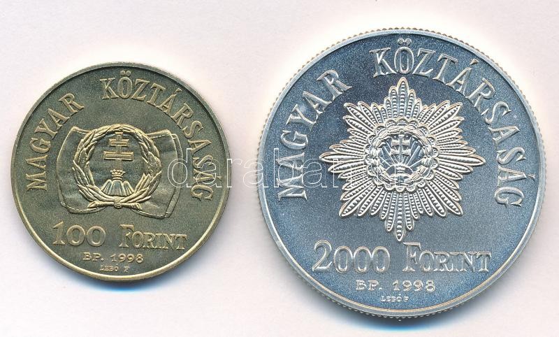 1998. 100Ft Cu-Ni-Zn "1848-49-es szabadságharc" + 1998. 2000Ft Ag "1848-49. forradalom és szabadságharc 150. évfordulója" kapszulában, tokban, tanúsítvánnyal, az MNB színes tájékoztatójával T:BU Adamo EM150., EM151