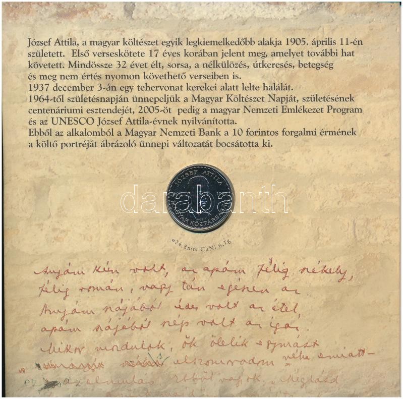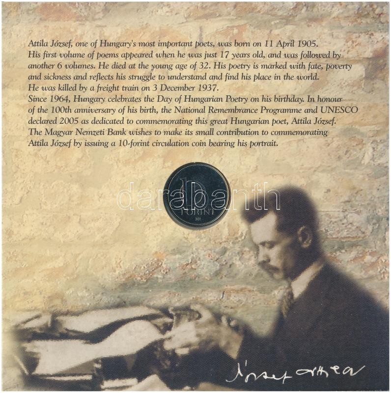 Leírás: 2005. 1Ft-100Ft (7xklf) forgalmi sor szettben + 2005. 10Ft "József Attila" T:BU Adamo FO39