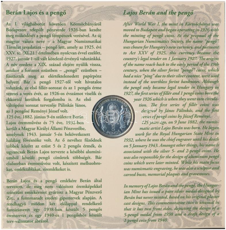 2007. 1Ft-100Ft (8xklf) "Berán Lajos és a pengő" forgalmi sor, benne "Berán Lajos és a pengő" Ag emlékérem (10g/0.999/27mm) T:BU halvány patina