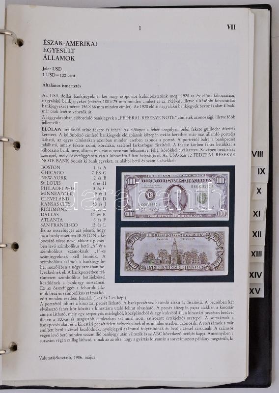 Leírás: Valutatájékoztató 1986. I. és II. kötet. Magyar Nemzeti Bank kiadása műbőr gyűrűs albumban, használt, szép állapotban