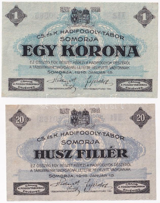 Hungary / Somorja / POW Camp 15.01.1916. 20 Heller + 1 Krone, both with double capital letters and one number series C:VG