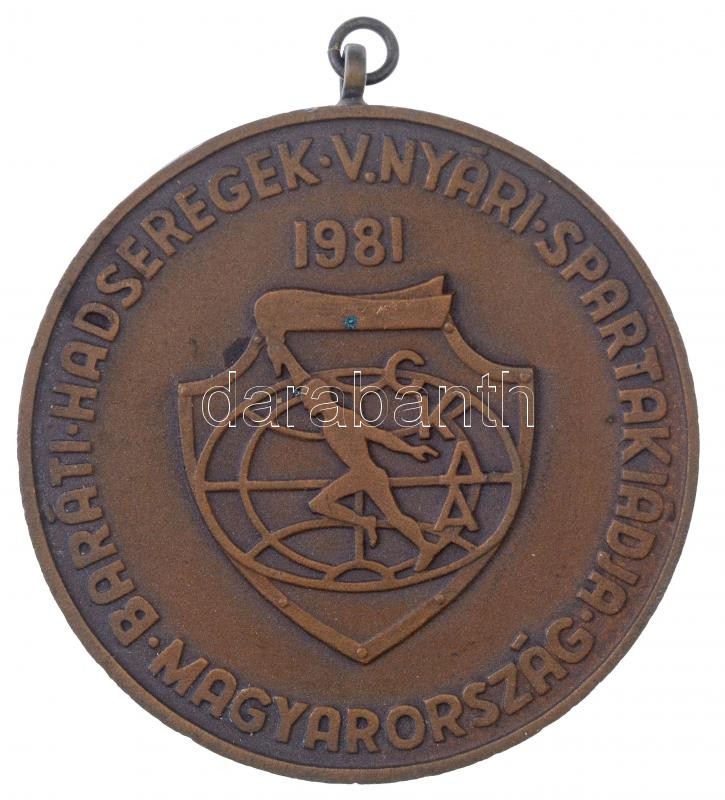 1981. "Baráti Hadseregek V. Nyári Spartakiádja - Magyarország 1981" kétoldalas katonai bronz sport emlékérem, "CSAPAT STILUSUGRÁS III" gravírozással T:1-