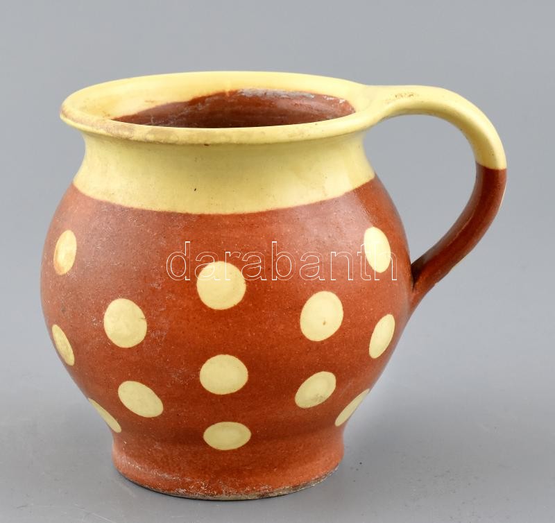 Leírás: Véghné H. jelzéssel: népi tejes köcsög, kerámia, kopott, m: 12 cm