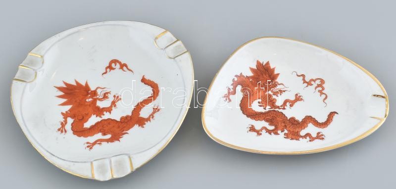 Leírás: 2db Kézzel festett sárkánnyal díszített jelzett Ilmenau és Weimar porcelán hamutál. Jelzett, kopott, d: 13 cm.