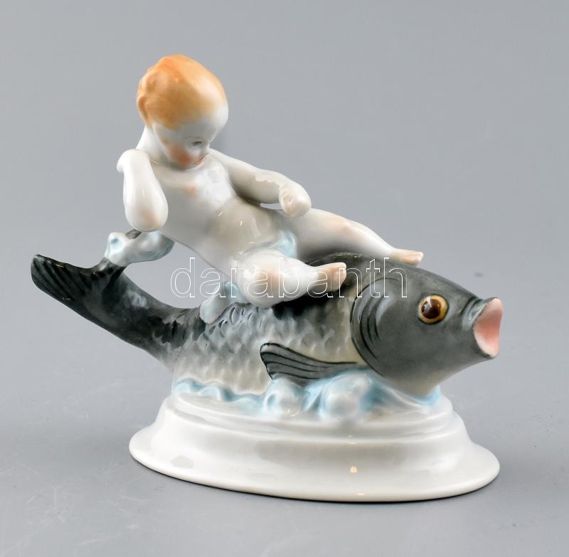 Leírás: Halon ülő puttó kézzel festett aranyozott sorszámozott jelzett Herendi porcelán figura hibátlan állapotban, kopott m:12cm