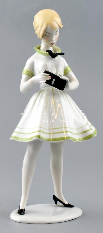 Leírás: Unterweissbach hölgy könyvvel, kézzel festett, jelzett, apró kopásnyomokkal, m: 24 cm