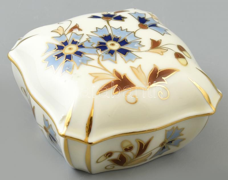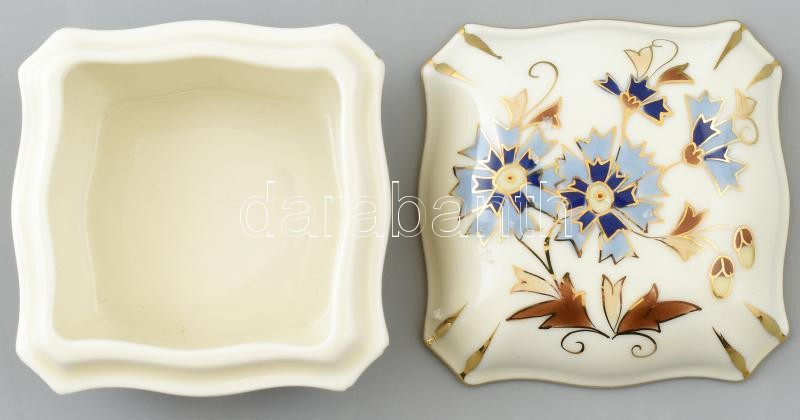 Leírás: Zsolnay búzavirágmintás porcelán bonbonier, kézzel festett, jelzett, hibátlan, 4,5x7,5x7,5 cm