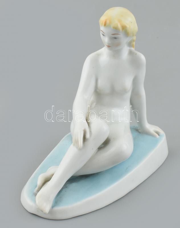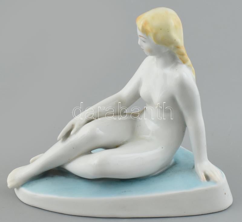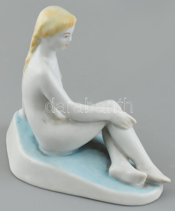 Leírás: Zsolnay ülő akt. Kézzel festett, jelzett, hibátlan 17 x 14,5 cm