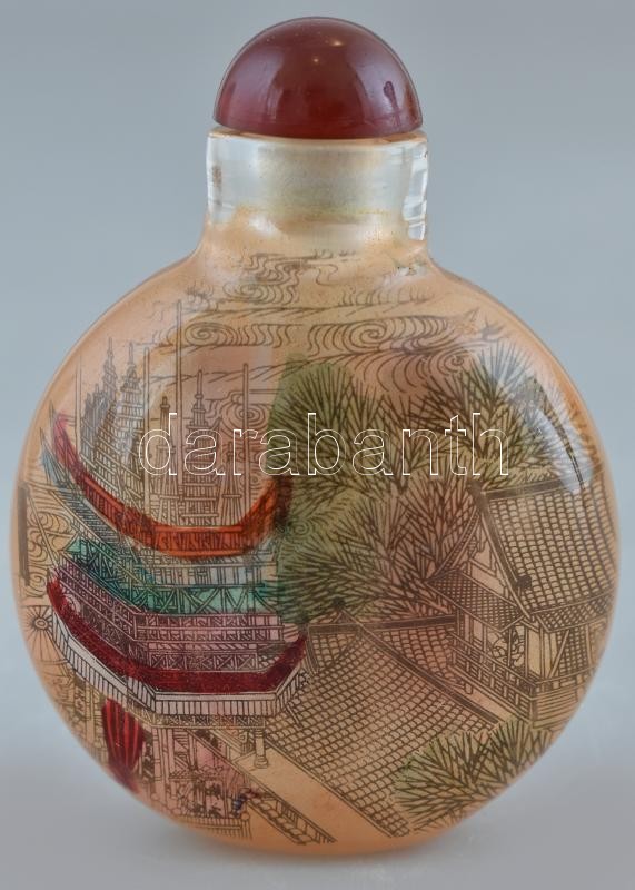 Kínai üvegcse, színezett, dugóval, 6,5x5 cm