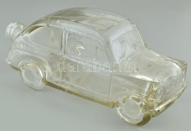 Leírás: Retró autó (Fiat Zastava) formájú üveg palack, formába öntött, kis kopásnyomokkal, 25,5x10,5x11 cm