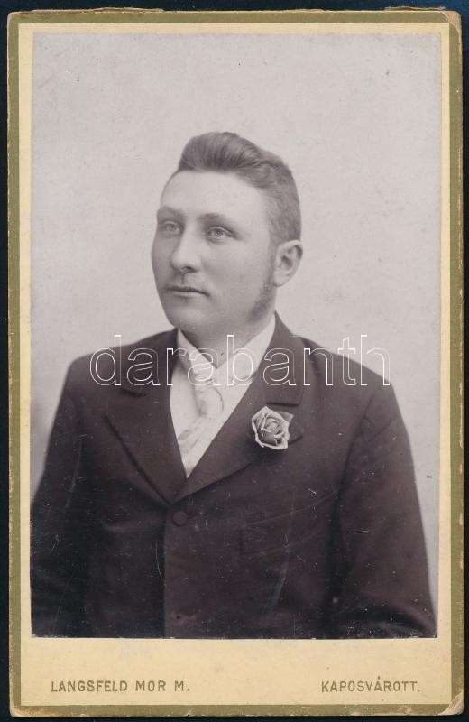cca 1890 Férfiportré, keményhátú fotó Langsfeld Mór kaposvári műterméb... https://www.darabanth.com/hu/406-Gyorsarveres/406.0/Fotomuveszet/Foto~500021/cca-1890-Ferfiportre-kemenyhatu-foto-Langsfeld-Mor-kaposvari-mutermebol-10-5C3976-5-cm~II2508103