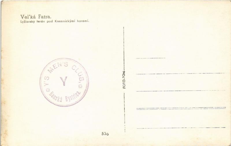 Nagy-Fátra, Velká Fatra; Lyziarsky terén pod Kremnickymi horami / Síterep a Körmöci hegyek alatt, téli sport / ski, winter sport + "Y'S MEN'S CLUB Banská Bystrica"