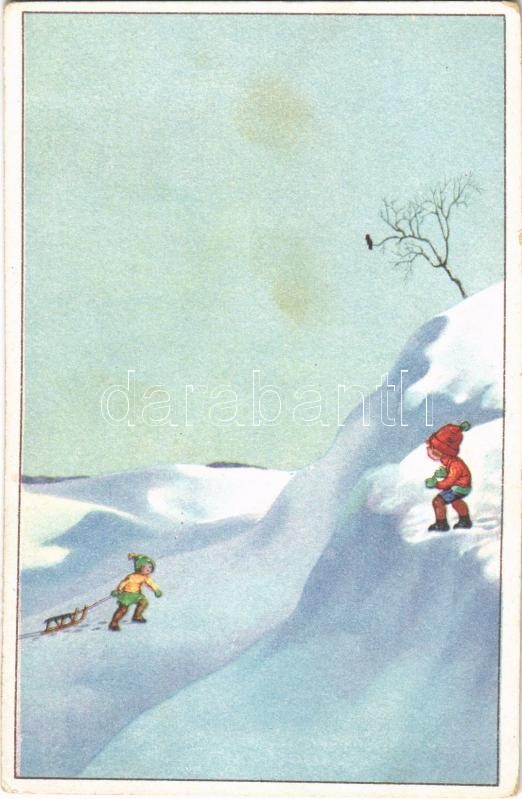 Children with sled, winter sport art postcard. WSSB 9005. (fl) https://www.darabanth.com/hu/406-Gyorsarveres/406.0/Kepeslapok/Sport~1500065/Children-with-sled-winter-sport-art-postcard-WSSB-9005-fl~II2315545