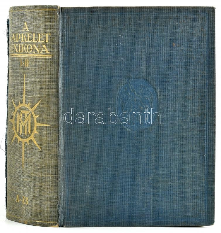 A Napkelet Lexikona I-II. köt. Bp., 1927, Magyar Irodalmi Társaság. Egy kötetben. Fekete-fehér fotókkal, térkép mellékletekkel. Kiadói aranyozott gerincű egészvászon-kötés, kissé kopott borítóval, az I. rész címlapja hiányos, sérült gerinccel.