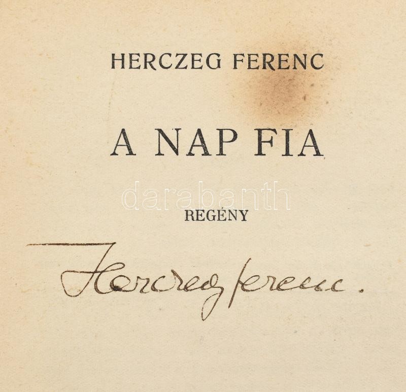 Herczeg Ferenc: A nap fia. Aláírt! Bp., 1931, Singer és Wolfner. Kiadó... https://www.darabanth.com/hu/406-Gyorsarveres/406.0/Konyvek/Konyvek-Egyeb-ritkasagok~1000023/Herczeg-Ferenc-A-nap-fia-Alairt-Bp-1931-Singer-es-Wolfner-Kiadoi-serult-elvalt-papi~II2511318
