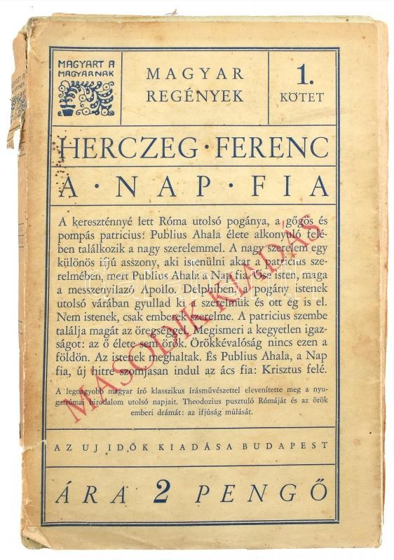 Leírás: Herczeg Ferenc: A nap fia. Aláírt! Bp., 1931, Singer és Wolfner. Kiadói. sérült, elvált papírkötésben.