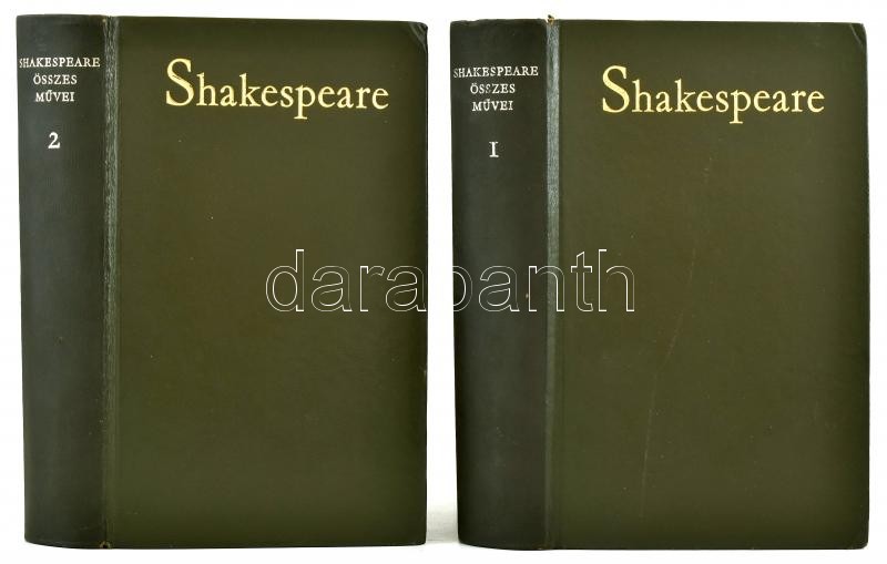 Leírás: Shakespeare összes művei. I-II. kötet. Bp., 1964, Európa, 1585+2 p. + 1445+2 p. Kiadói aranyozott egészbőr-kötés. Ritka!
