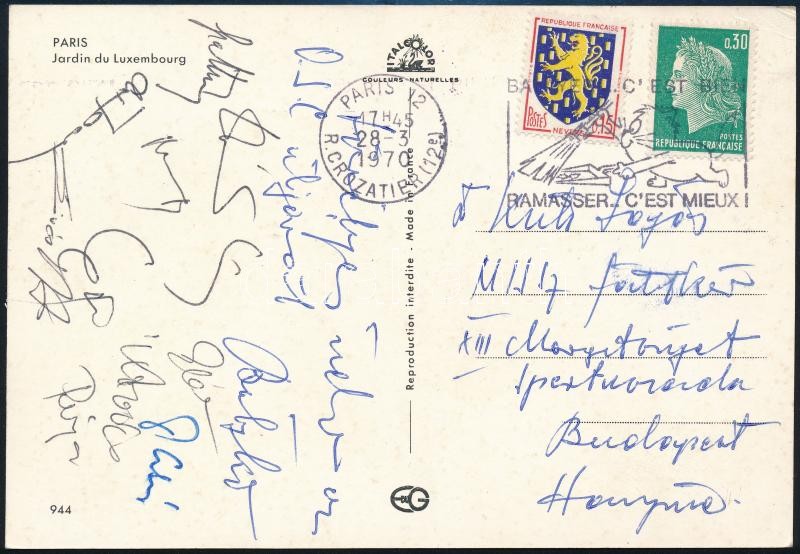Leírás: 1970 Képeslap az OSC bajnok vízilabda csapata tagjainak aláírásával, pl. Szívós István