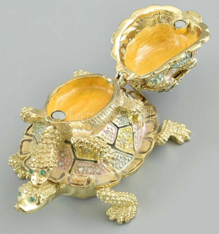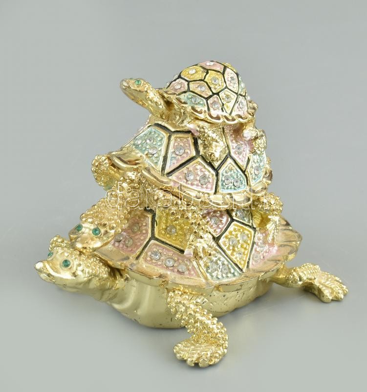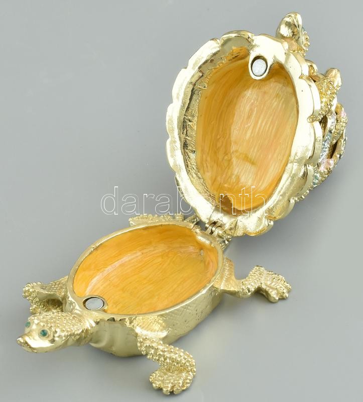 Leírás: 2 rekeszes zománcozott fém teknős formájú doboz. m: 7,5cm