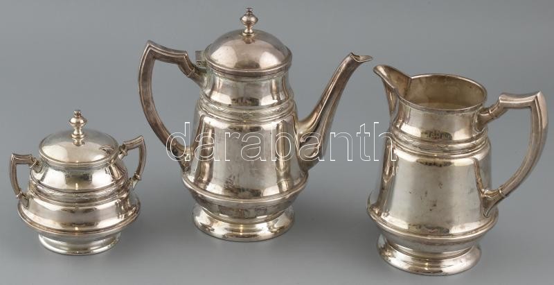 Leírás: Art deco fém tea kiöntő, cukordoboz, tejkiöntő. Jelzés nélkül.