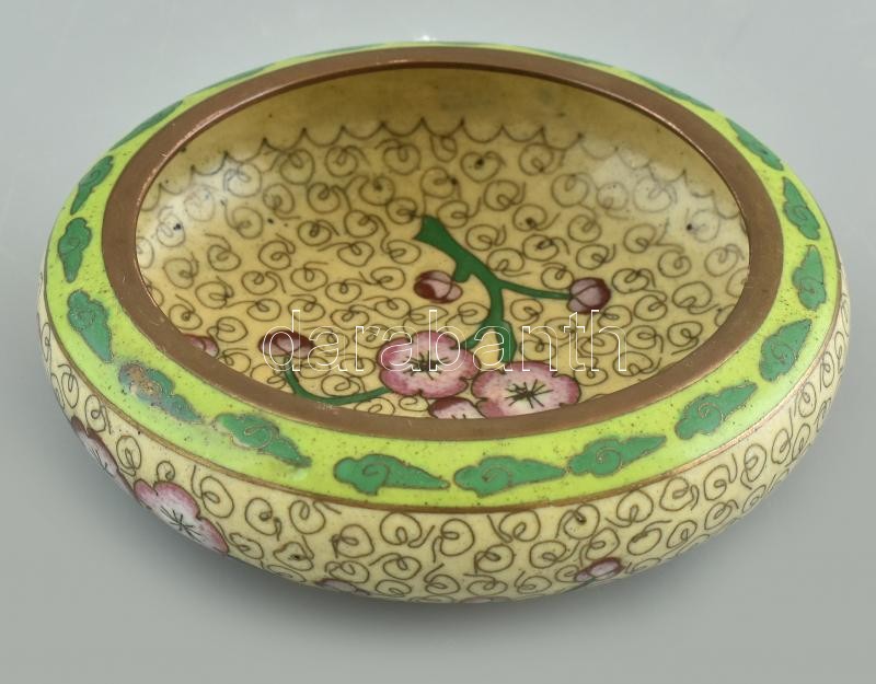 Leírás: Cloisonne, rekeszzománcos kínai tálka, jó állapotú d: 11cm