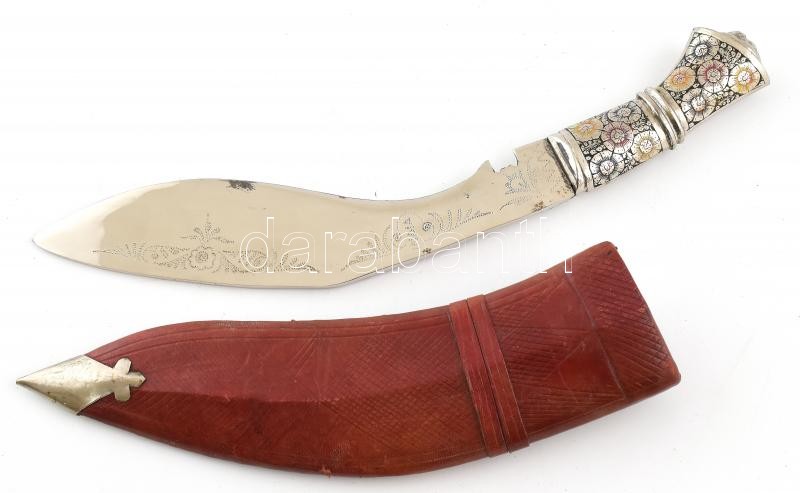 Indiai kukri tőr, díszes markolattal és pengével, tokkal, kisebb kopás... https://www.darabanth.com/hu/406-Gyorsarveres/406.0/Mutargy-papirregiseg-egyeb/Bolhapiac~500012/Indiai-kukri-tor-diszes-markolattal-es-pengevel-tokkal-kisebb-kopasnyomokkal-h-32-cm~II2510366