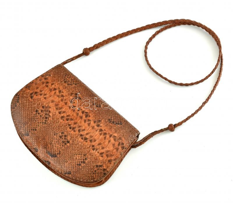 Leírás: Kígyóbőr táska, kis kopásnyomokkal, 23x15 cm