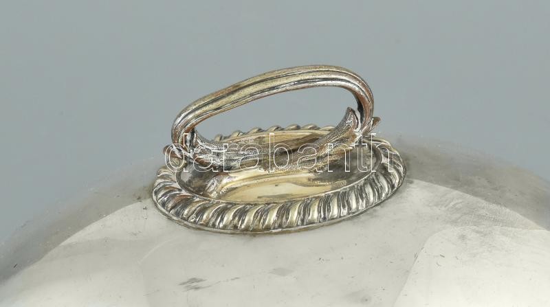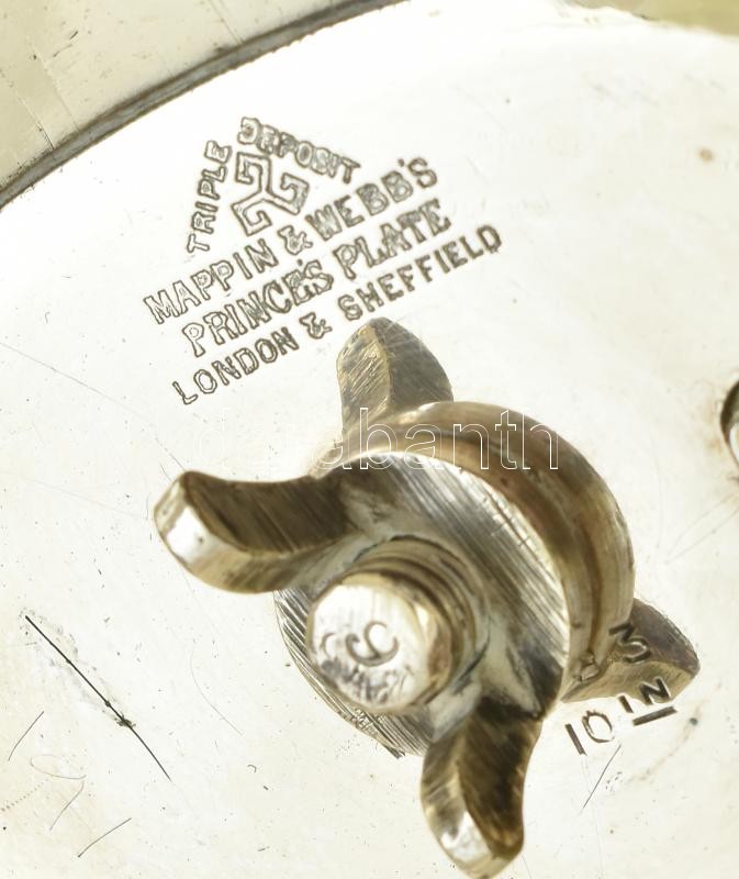 Leírás: Mappin & Webb ezüstözött fém fedél. Jelzett. Apró horpadással, kopásnyomokkal. m: 15 cm, 19x25,5 cm