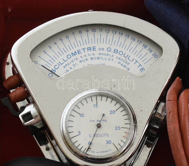 Oszcillométer (vérnyomásmérő), francia, 1930 körül, vezetéke sérült, d... https://www.darabanth.com/hu/406-Gyorsarveres/406.0/Mutargy-papirregiseg-egyeb/Bolhapiac~500012/Oszcillometer-vernyomasmero-francia-1930-korul-vezeteke-serult-dobozban~II2510778