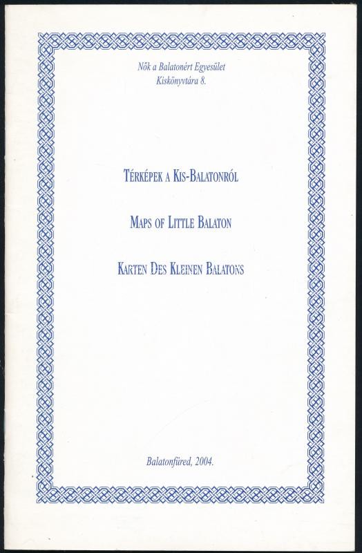 Térképek a Kis-Balatonról. Maps of Little Balaton. Karten des Kleinen Balatons. Összeáll.: Csongrádi Jenőné. Nők a Balatonért Egyesület Kiskönyvtára 8. Balatonfüred,2004., Nők a Balatonért Egyesület, 32 p. Kiadói papírkötés. Megjelent 1000 példányban.