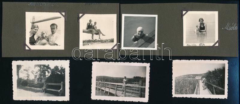 Leírás: cca 1934-1950 Balatoni életképek, 10 db fotó, részben kartonra ragasztva, 4,5×4,5 és 14×9 cm közötti méretekben
