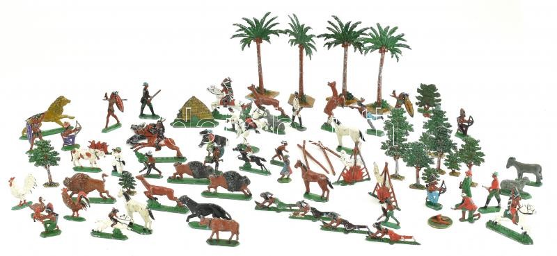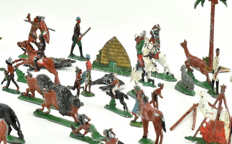 Leírás: Nagyon sok western, indiános, festett ólomkatona és tereptárgy kb 4-7 cm