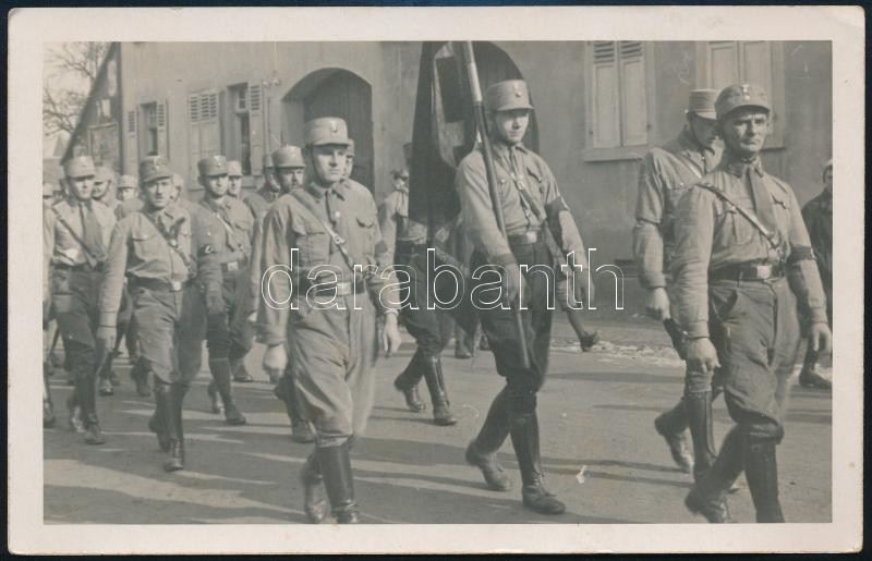 Leírás: 1933 SA (Sturmabteilung) felvonulás Philippsburgban (Baden-Württemberg), fotó, feliratozva, 9×14 cm