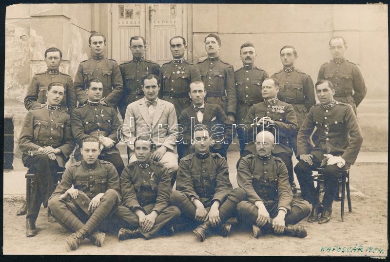 1934 Kaposvár, katonák csoportképe, hátoldalon aláírásukkal, 9×13,5 cm https://www.darabanth.com/hu/406-Gyorsarveres/406.0/Mutargy-papirregiseg-egyeb/Militaria~500028/1934-Kaposvar-katonak-csoportkepe-hatoldalon-alairasukkal-9C39713-5-cm~II2508307