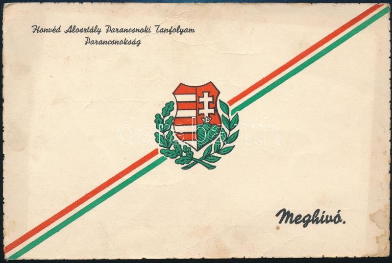 Leírás: 1949 A Honvéd Alosztály Parancsnoki Tanfolyamának tiszti avatóünnepségének meghívója a Kossuth Akadémiára, Kossuth-címerrel