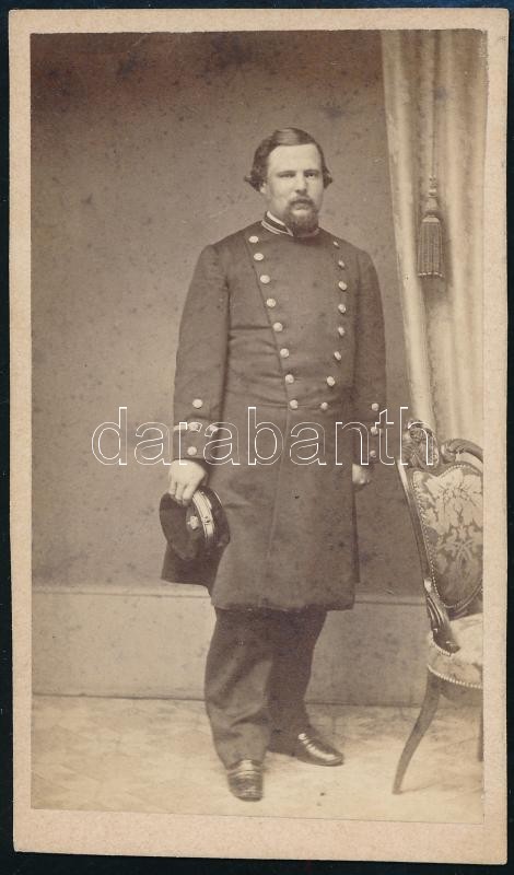 Leírás: cca 1861 Katonaportré, keményhátú fotó August Birch koppenhágai műterméből, 10×6 cm