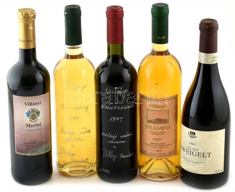Leírás: 5 palack muzeális villányi vörös és fehérbor. bontalan palackok, szakszerűen tároltak.